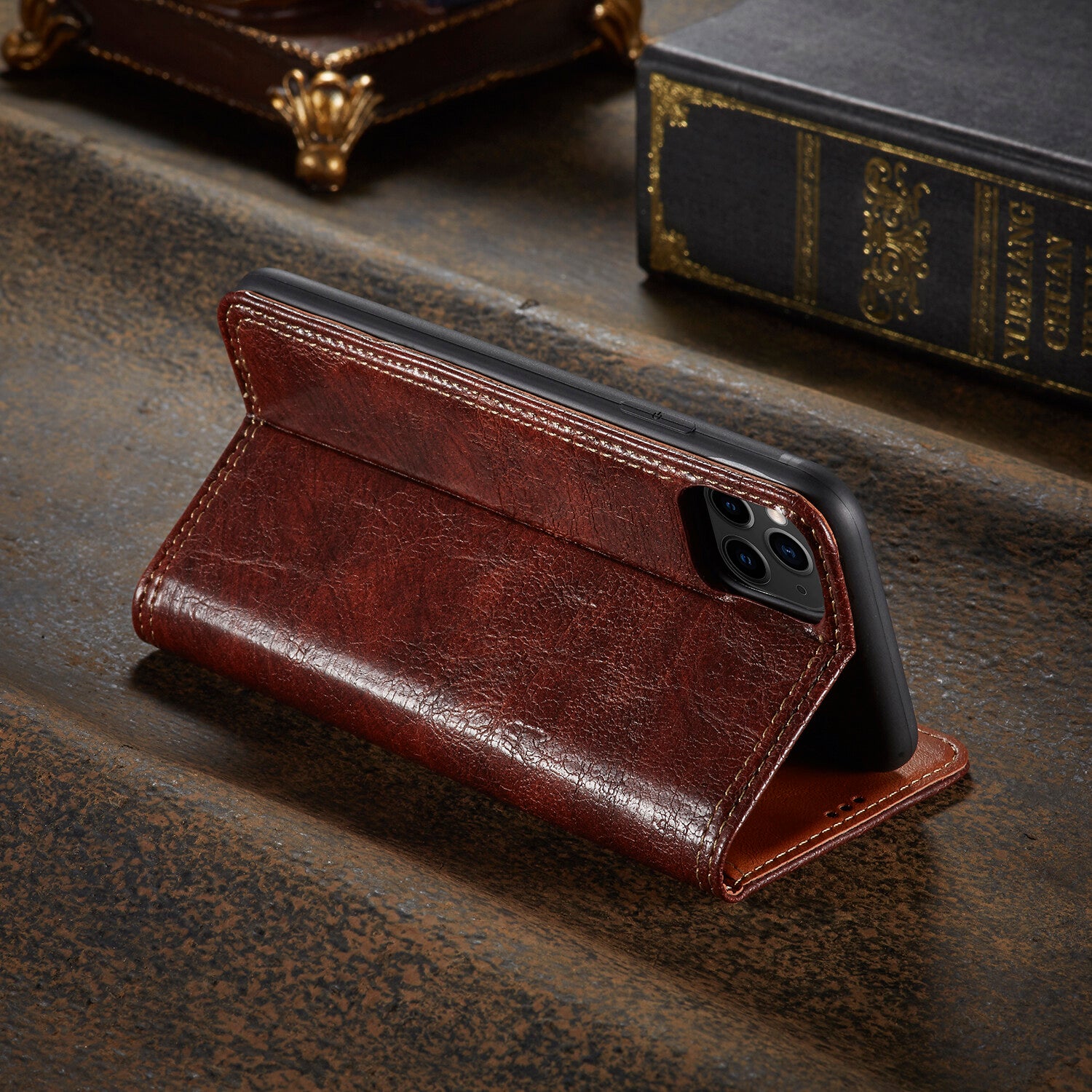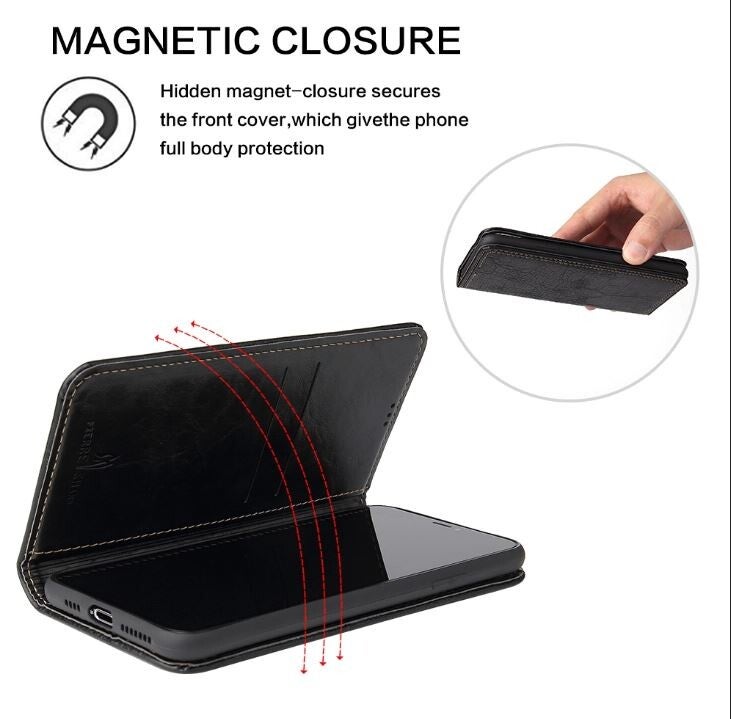 Handy Hülle Samsung Apple iPhone Retro Holzmotiv Schutz Tasche Magnetverschluss